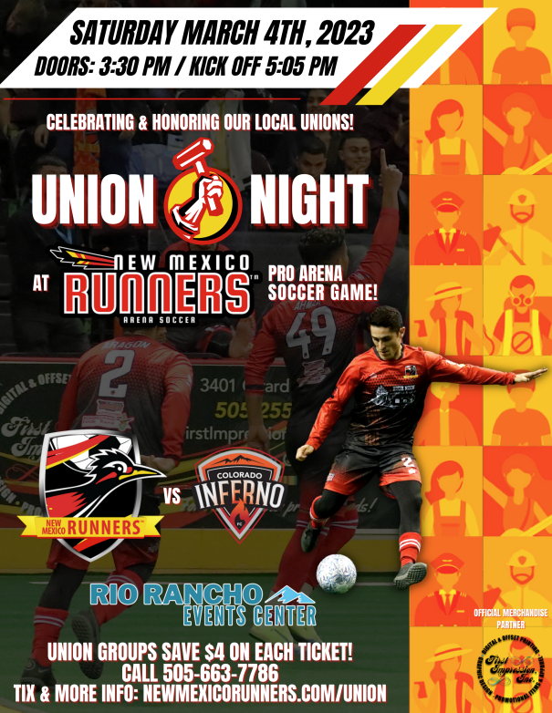 Union Night at New Mexico Runners Pro Arena Soccer Game!